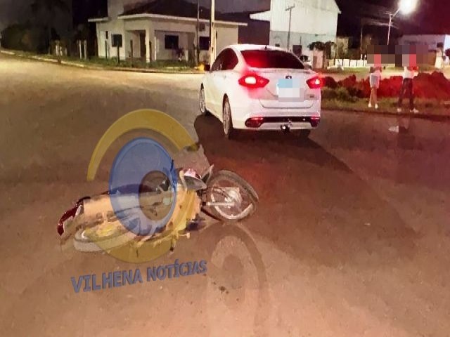 Na noite de segunda-feira (29), um acidente de trânsito foi registrado no entroncamento da avenida Rondônia com a BR-174, no setor 19, bairro Parque Industrial Novo Tempo, envolvendo um carro Ford Fusion e uma motoneta Honda Biz 125.